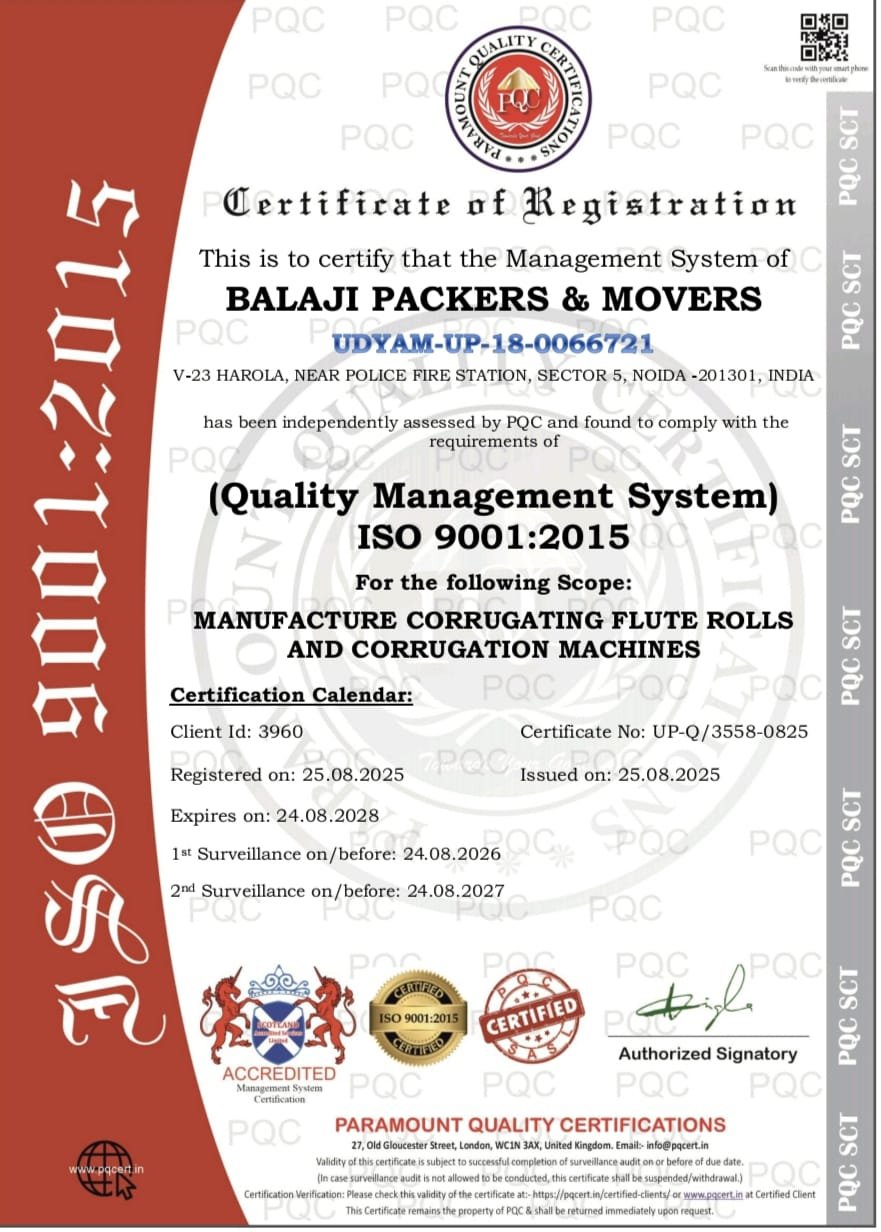 Balaji Packers and Movers is an ISO 9001:2015 certified company offering reliable home, office, and vehicle shifting services. We provide safe packing, loading, unloading, and storage solutions across Noida with professional care and timely delivery at affordable rates.